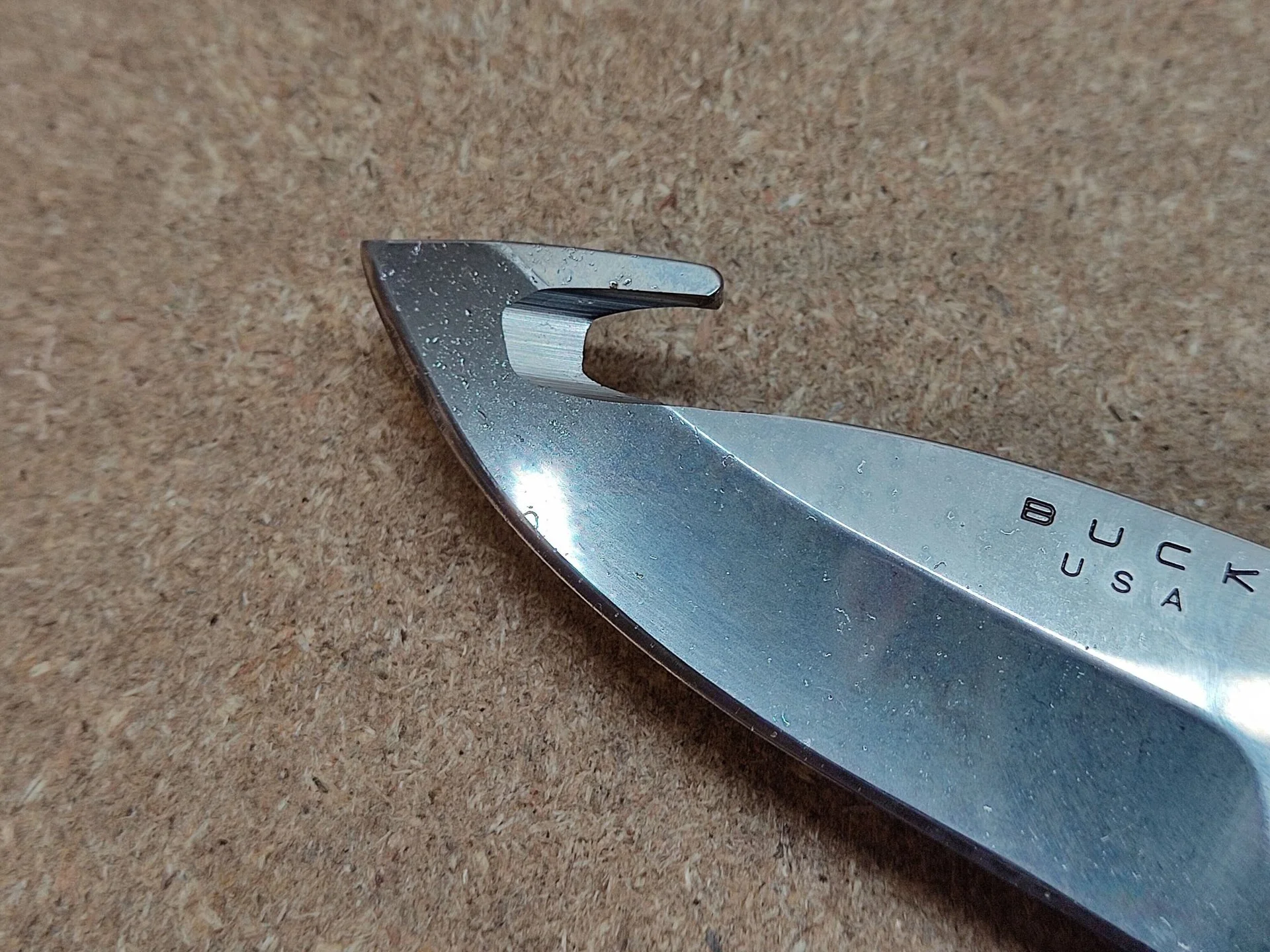 肉や内臓を傷つけずに、皮だけを切ることができるように、先端が丸まっていて上向けに刃がついている。これほど便利なナイフはない。ドロップポイントも、これがやりやすいように先端が少し下がっているが、専用品にはかなわない。めちゃくちゃ便利だから、騙されたと思って一回使ってみて欲しい。