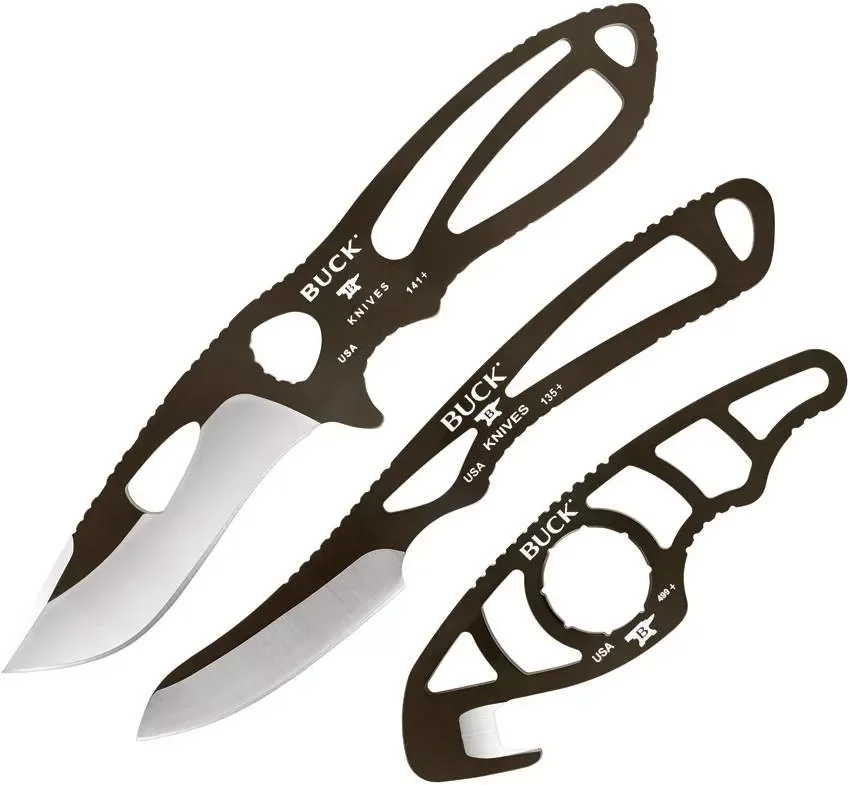 BUCKの軽量ナイフのセット。鋼材420HC。剥き出しだから手が痛くなるかと思いきや、軽いので問題なく使える。